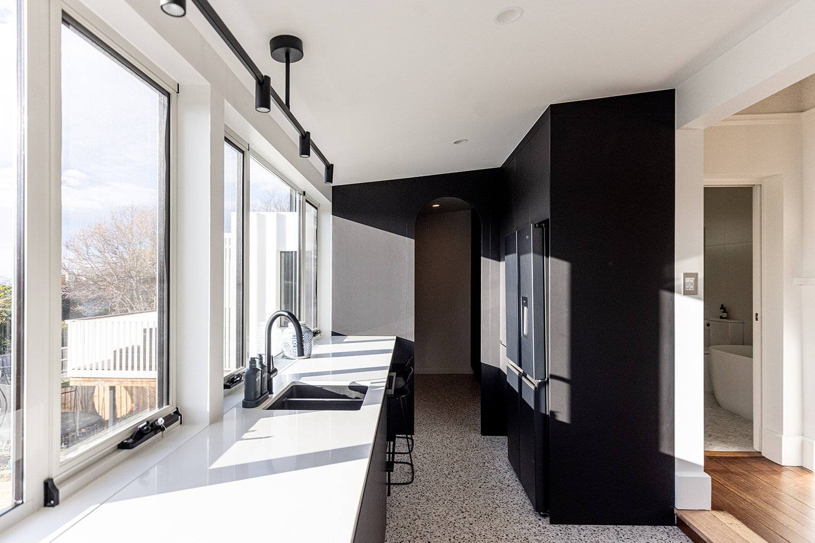 Project Frederick involved a major internal renovation of a century-old home in West Hobart to better suit the current needs of the family. Through clever redesign, the internal footprint was expanded by converting an external store room, allowing for a larger bathroom and more open social zones, while reconfiguring the living, dining, and kitchen areas to improve flow and functionality. The result is a seamless meld of historic charm and modern living.