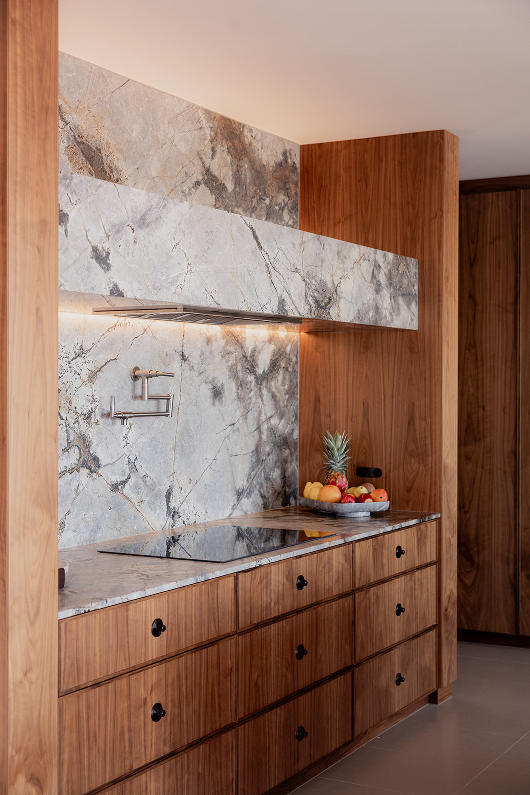 Bespoke custom-designed joinery throughout, carefully detailed to bridge the character of the original home with the clean lines of the contemporary extension.